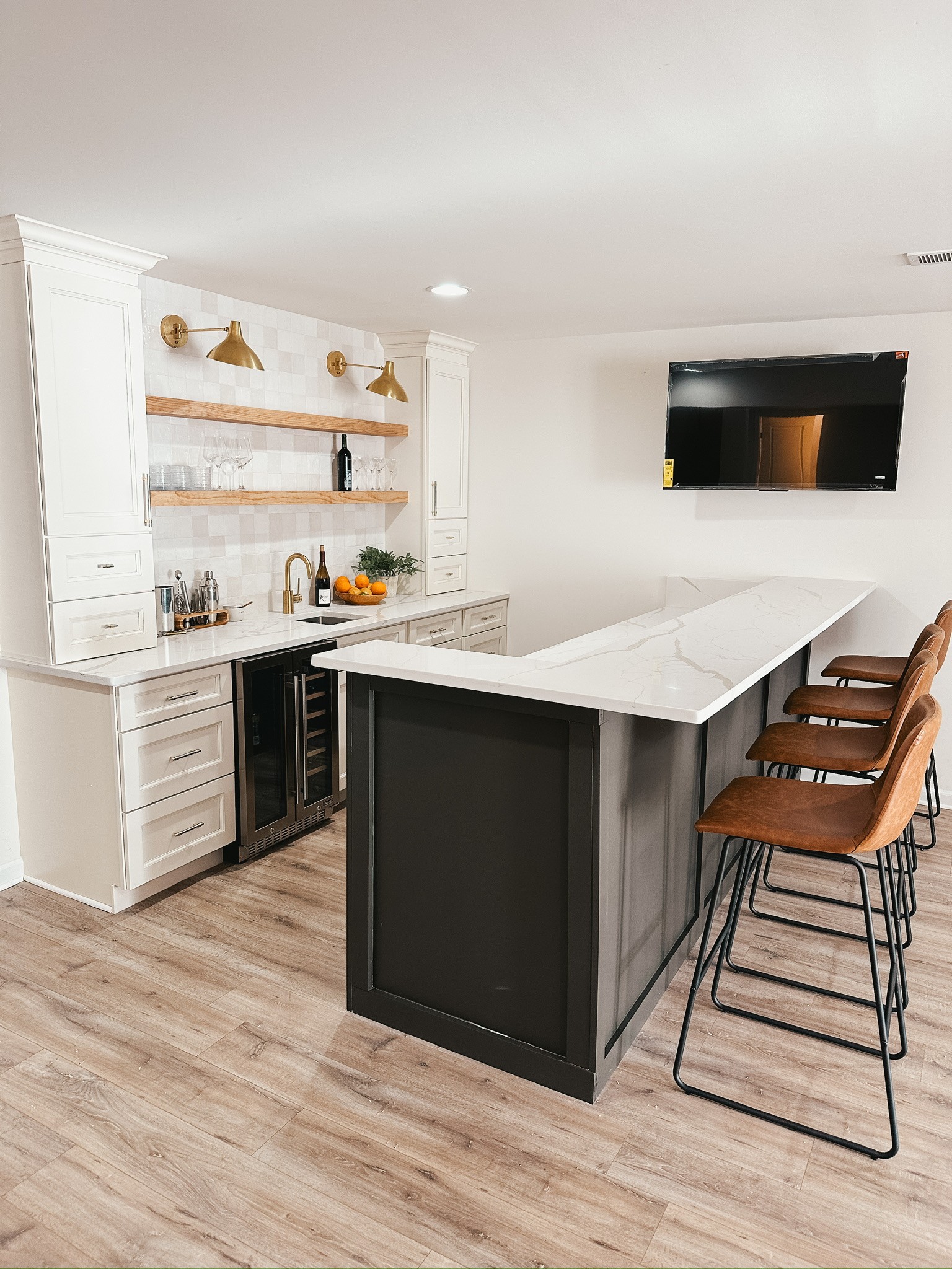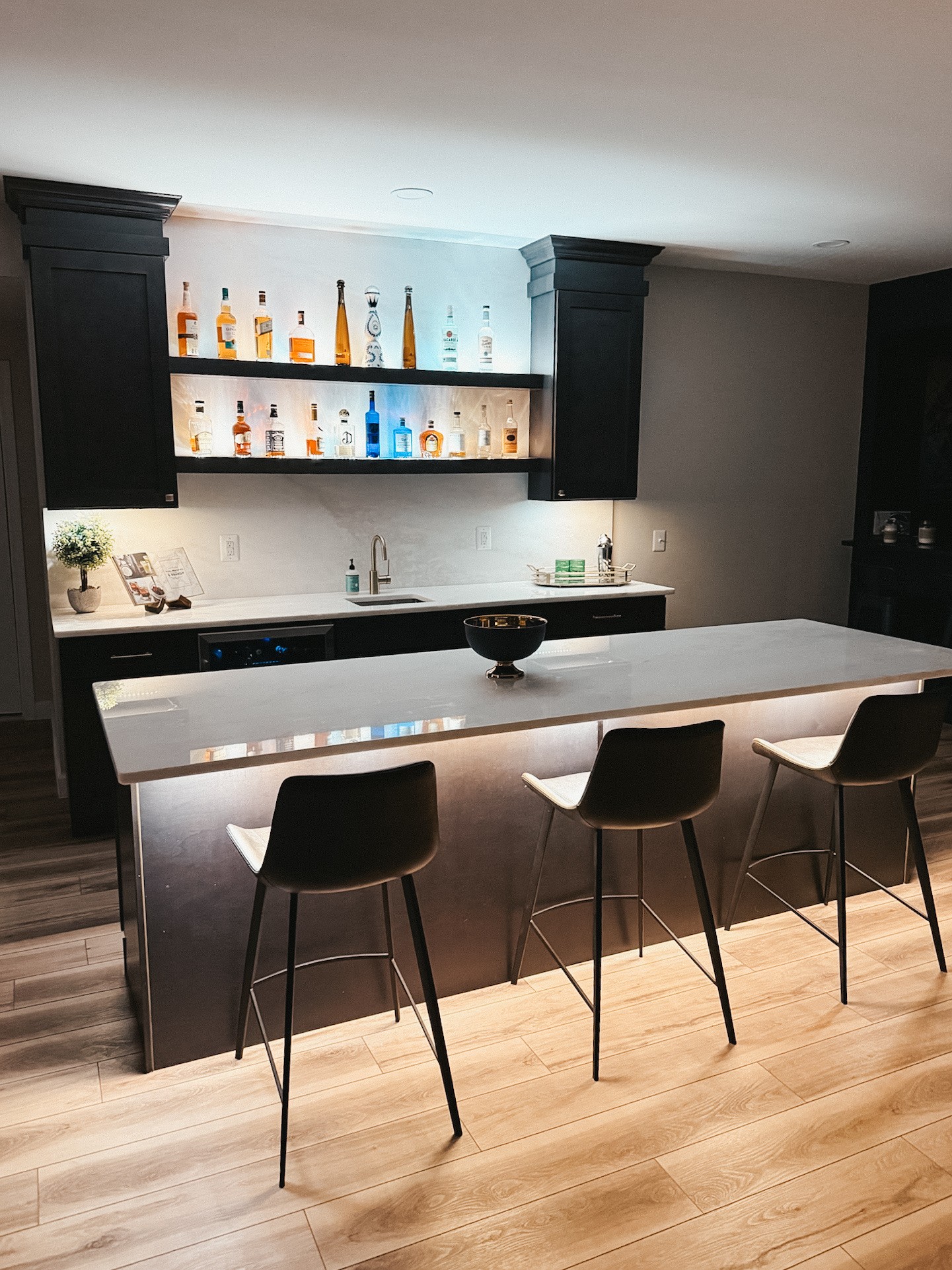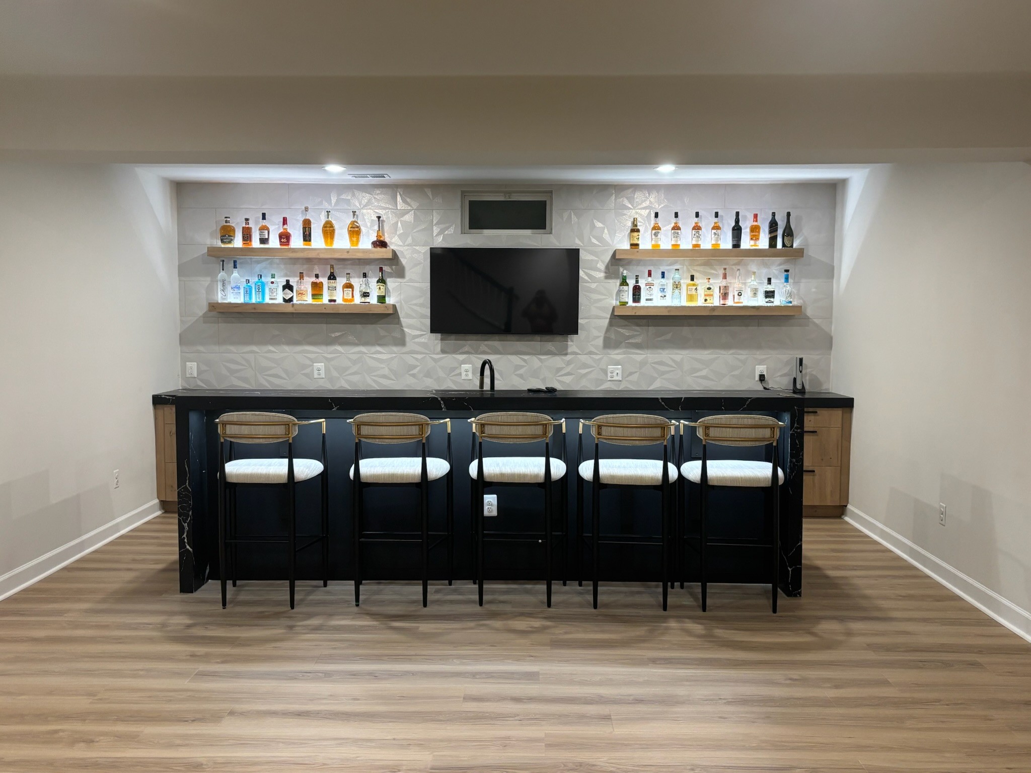 Whether you're looking for a sleek, modern wet bar with running water and storage or a stylish dry bar for mixing drinks and showcasing your collection, our expert team brings your vision to life.